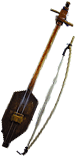 トゥバ共和国の弓で弾く擦弦楽器。モンゴルの馬頭琴の原型と言われ、ハーモニクスが豊かな音色が特徴。ミルクをかくはんする大きな木製のさじに、弦を張ったのが始まりとの説も。2弦の素朴な構造ながら多彩な表現が可能で、ホーメイの伴奏に多用される。トゥバの歌手たちにとっては無くてはならない重要な楽器。 |